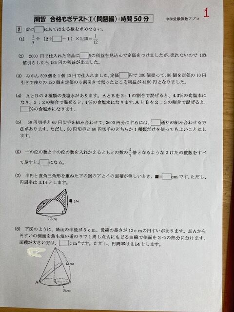 合格算数プリントの内容