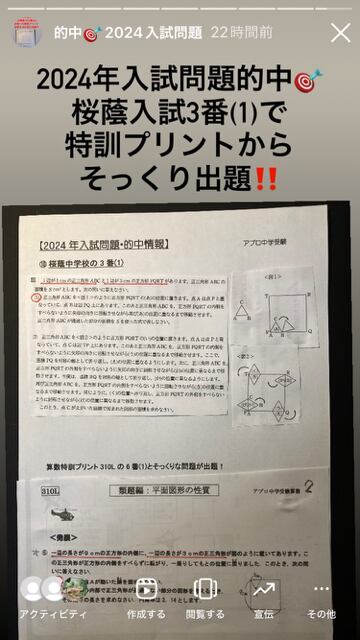 ★2024年入試3番(1)が算数特訓プリント310Lの6番(1)にそっくり出題。