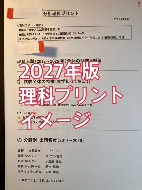 【7月まで早割】栄東中学校・A、B日程:2027年分析理科プリント