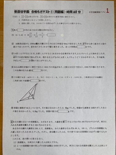 ●世田谷学園中学校対策 合格算数49ページ