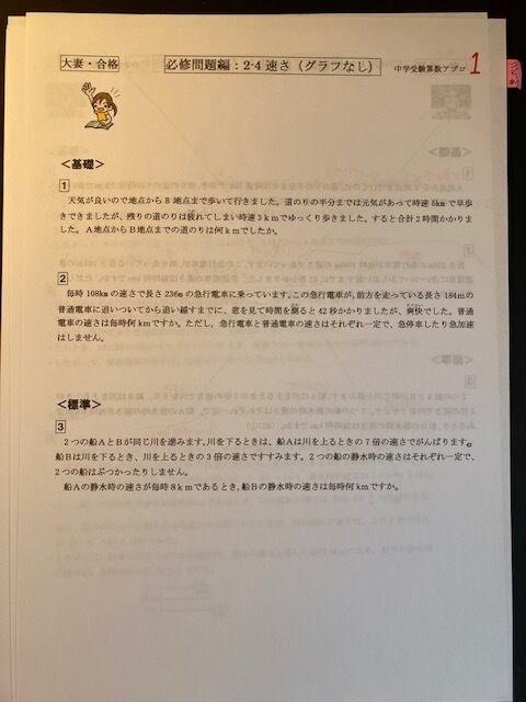 合格算数プリントの内容(※写真はイメージ)